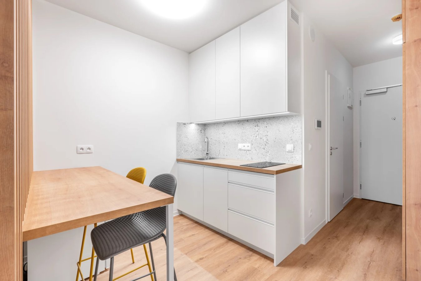 Jednotky jsou navržené pro maximální pohodlí bez starostí se zařizováním. Jsou kompletně vybavené praktickým nábytkem na míru. Součástí standardu je moderní kuchyňská linka se spotřebiči Electrolux a plně zařízená koupelna včetně pračky. Stačí si jen přinést osobní věci a můžeš rovnou bydlet.